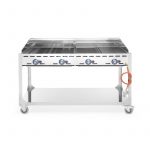 Ce Barbecue à Gaz Professionnel Green Fire sur Roulettes est doté de 4 brûleurs permettant ainsi de faire cuire une grande quantité de produits alimentaires. Il résiste au vent de par ses entrées d’air améliorées. Solide et performant, il est conçu en acier inoxydable 18/0.