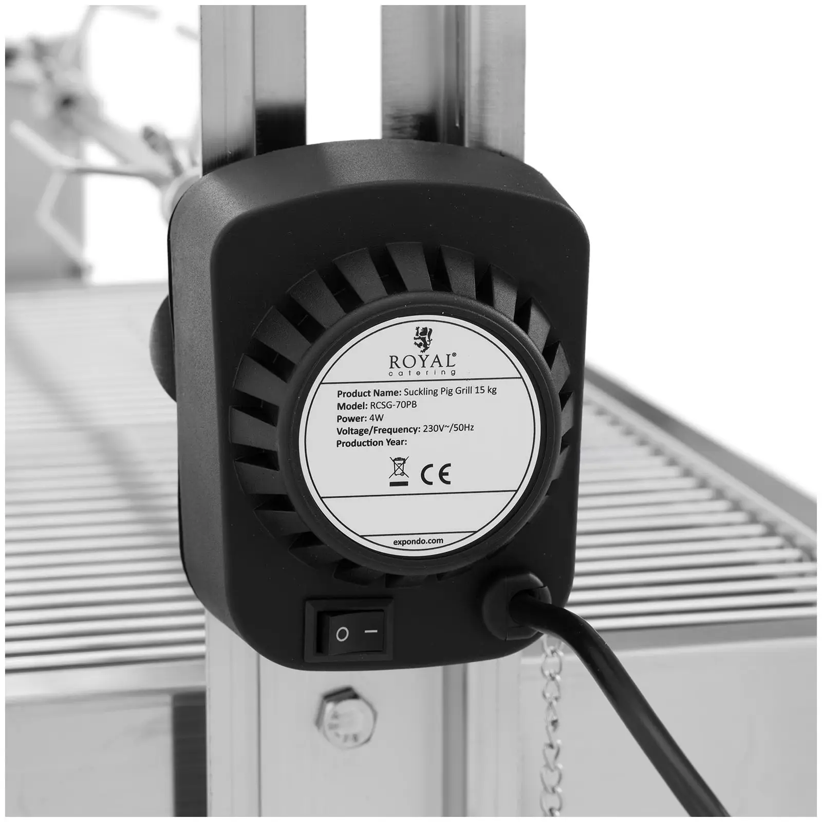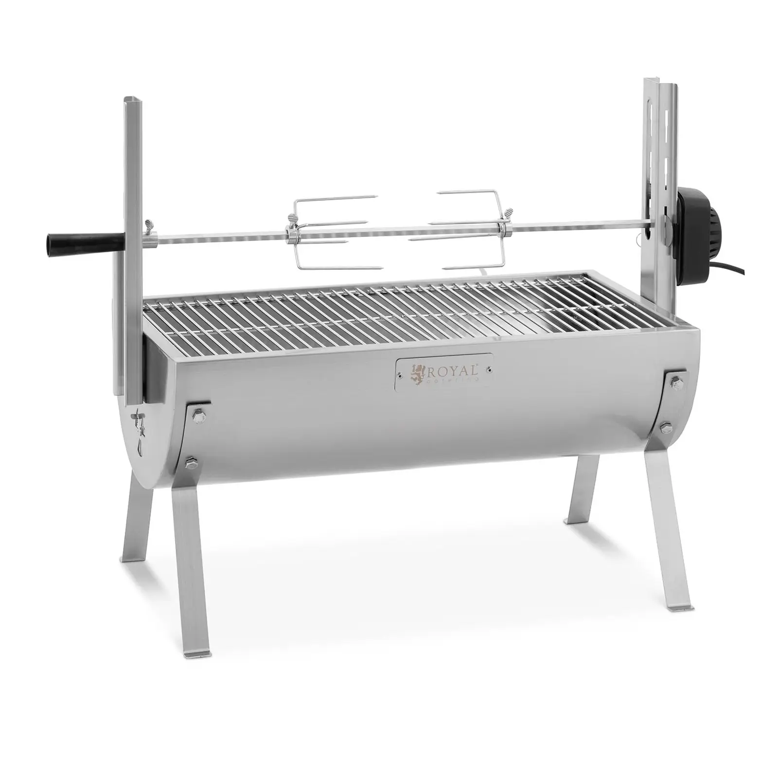 Barbecue tourne broche - avec moteur - 40 kg - longueur broche : 138 cm - Inox - protection contre le vent - Royal Catering