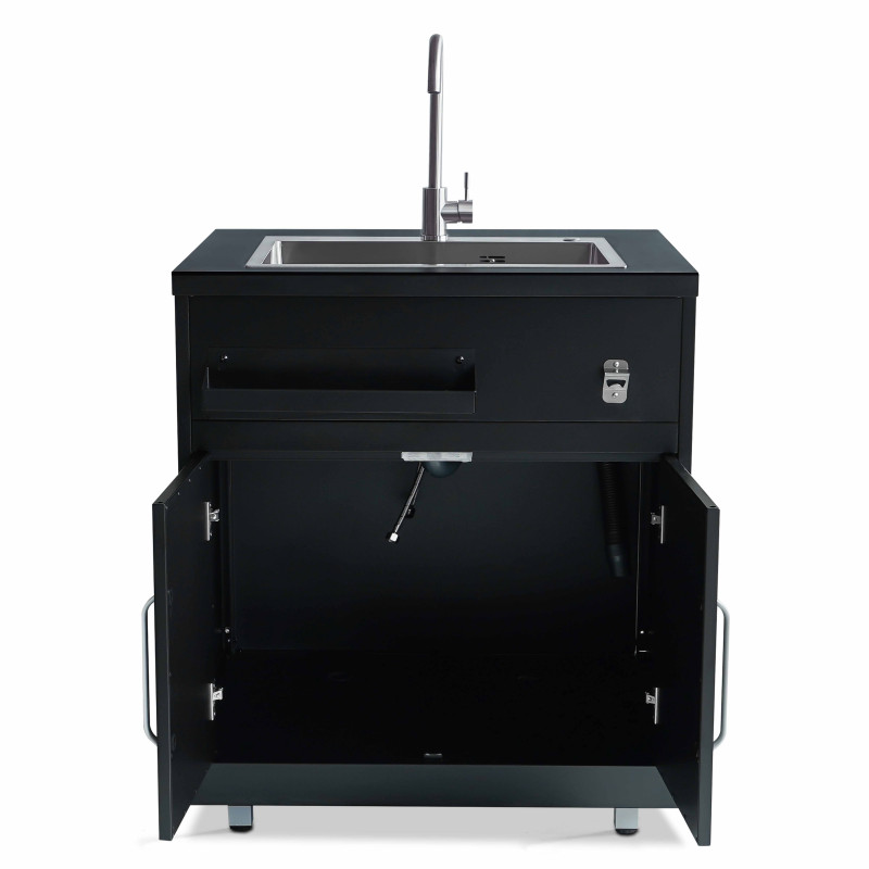 - Meuble évier 2 portes en acier noir pour cuisine extérieure